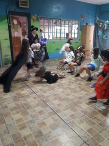 Los chicos comenzaron a andar por el mundo de la composición de un personaje, imaginando su historia previa, jugando con la voz, su lenguaje, la postura y su forma de ser. En cuanto al baile, todas las clases, realizaron entradas en calor, trabajos de estiramiento y ejercicios de equilibrio y destreza, entrenando al cuerpo y a la memoria para poder realizar coreografías. Se animaron a cantar solos y de forma grupal, aprendiendo a proyectar la voz, desarrollando oído musical y expresando en cada canción una emoción particular.
